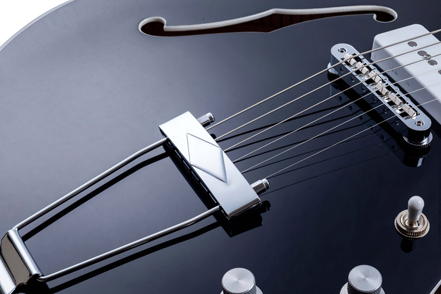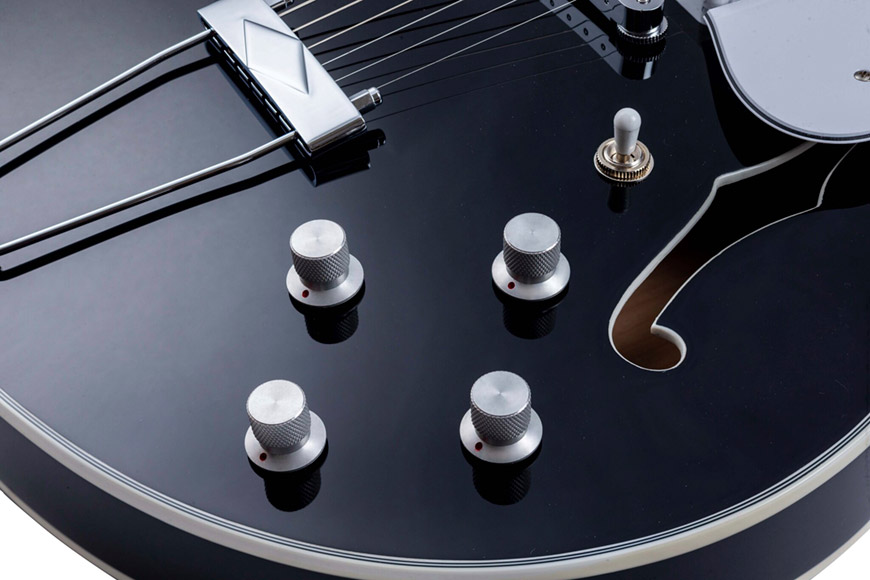 A estrutura semi-acústica do corpo usa um bloco central com alívio de peso, aumentando o sustain enquanto é resistente ao feedback, mesmo em níveis de volume elevados.